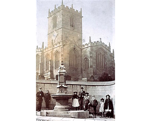 The Jeffcock Memorial, in polished black granite, was constructed in 1903 and was formerly a fountain. It commemorates Maria and Thomas William Jeffcock, J.P., D.L. who died in 1883 and 1900 respectively. William Jeffcock became the very first Mayor of Sheffield in 1843.